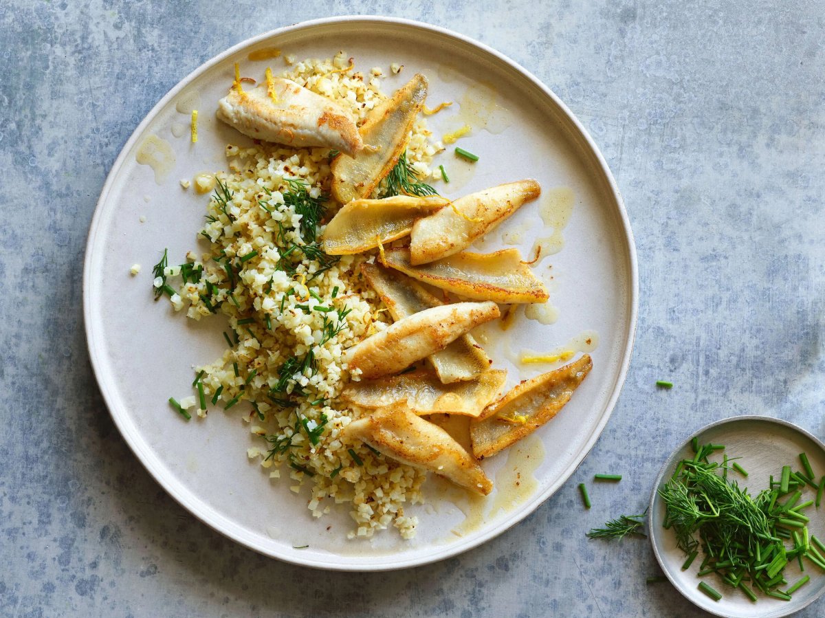 Servie avec pommes grenaille, légumes du jour & salade Env. 30min d’attente