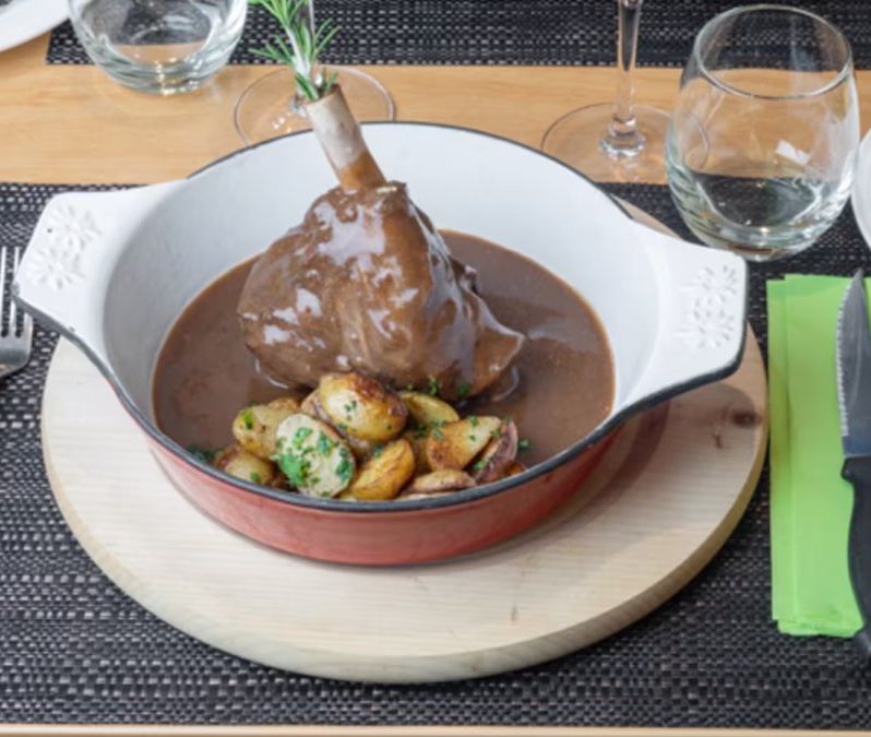 Fondue « Boyarde » (Fin bouillon d’épices et de vin rouge) Viandes fraîche coupés en lanières de bœuf et cheval 250gr, p. pers