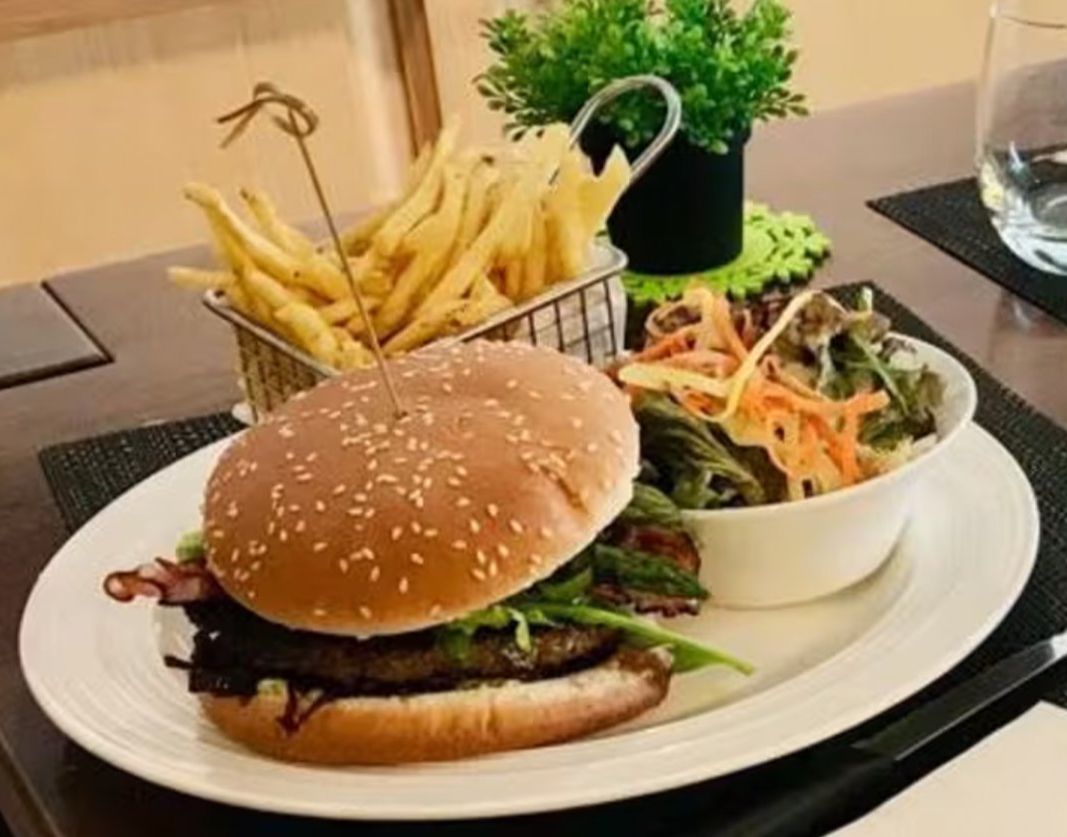 Viande de bœuf (180gr) servie avec buns maison frites & petite salade